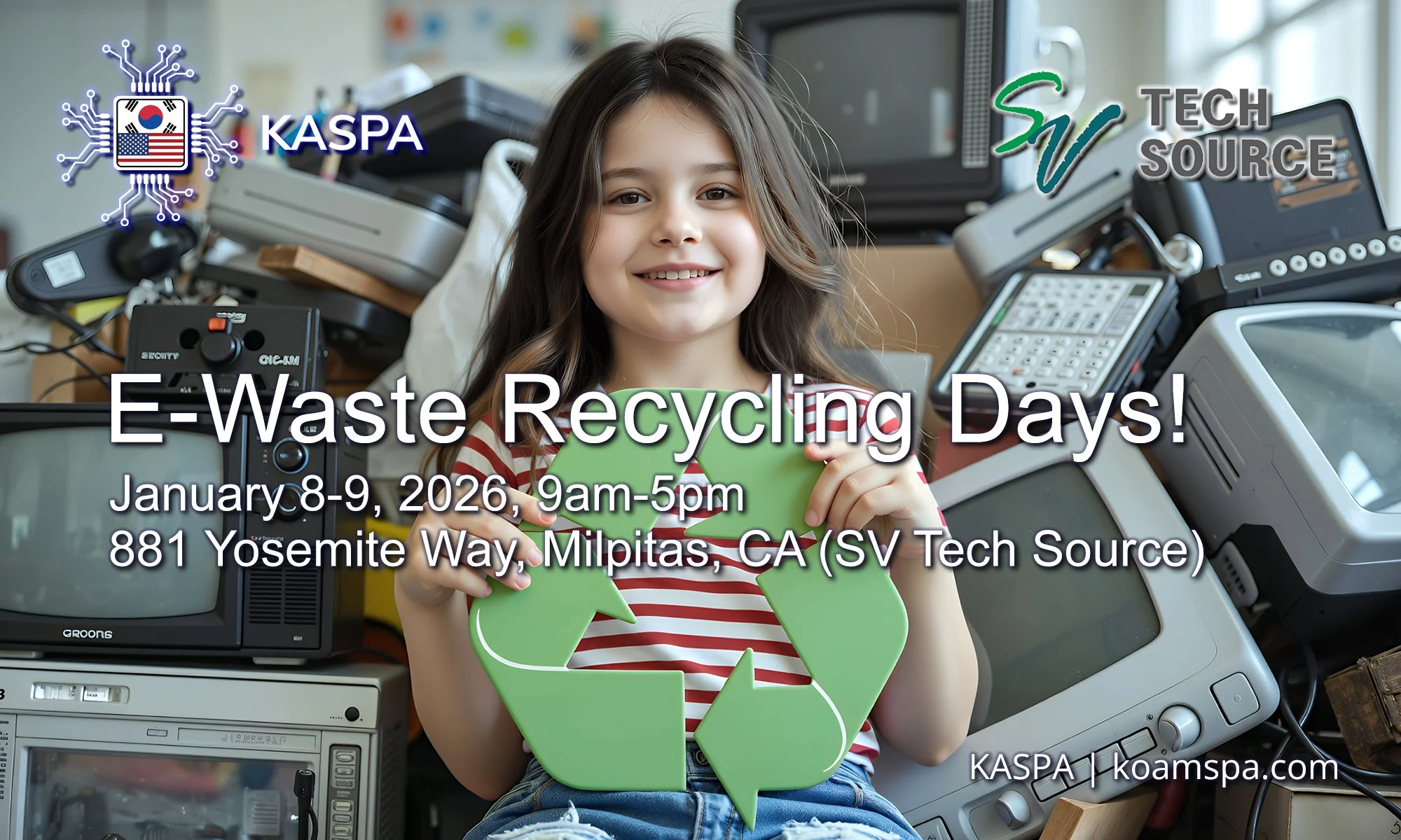 KASPA is proud to partner with SV Tech Source, a leading e-waste, solar panel recycling, data center engineering, and IT asset management company, to launch a community recycling program that supports responsible e-waste management and sustainability. For more info, visit our LinkedIn page here.